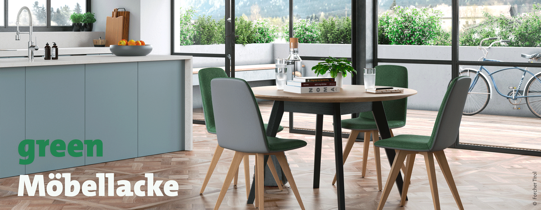 Nous passons environ 90 % de notre temps à l'intérieur de bâtiments, c'est pourquoi il convient de créer un climat sain, surtout dans les pièces d'habitation. De nombreuses peintures et vernis contiennent des substances toxiques qui pénètrent dans l'organisme par l'air ambiant. Les produits à faibles émissions portant le label green sont plus respectueux de l'environnement et de la santé. Tous les produits sont exempts des produits chimiques nocifs que l'on trouve dans les produits traditionnels. Lors de la fabrication, nous veillons à utiliser une très grande proportion de matières premières renouvelables. Les matières premières utilisées pour les produits proviennent principalement d'Europe. 100 % neutre en CO₂, la production se fait à Schwaz (Tyrol).